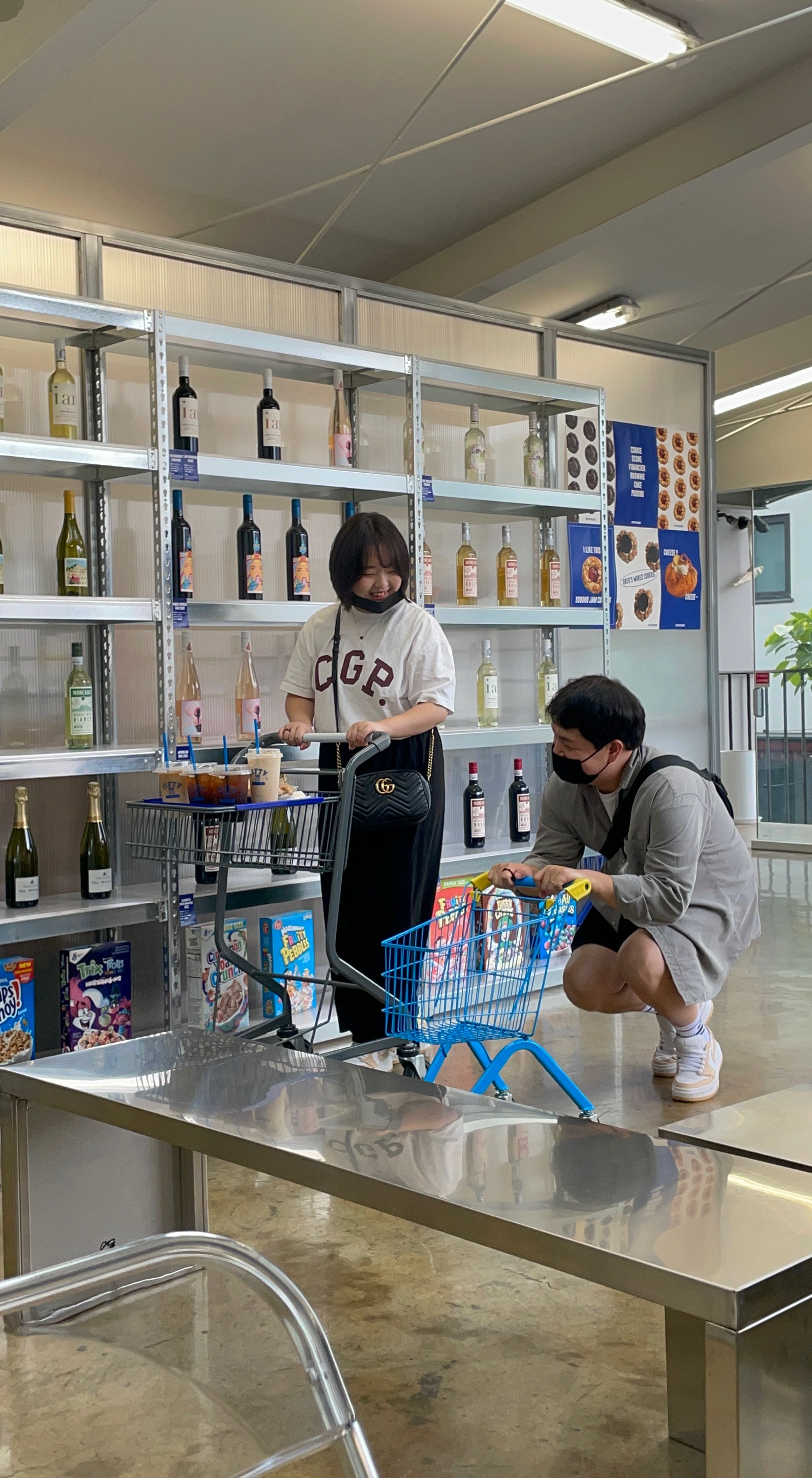 1.와인과 시리얼이 있는 선반 앞에서