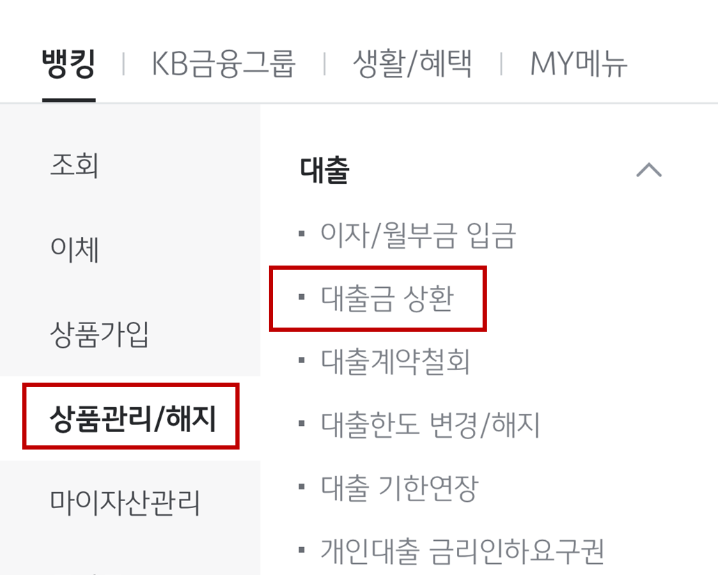 상품관리/해지 -> 대출금 상환 들어가면 됨!