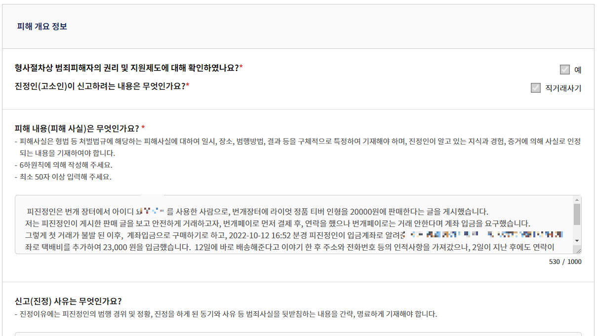 피해 내용 같은 경우에는,
