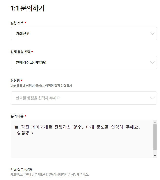 번개장터 1:1 문의하기 고객센터로 신고를 진행했어요~