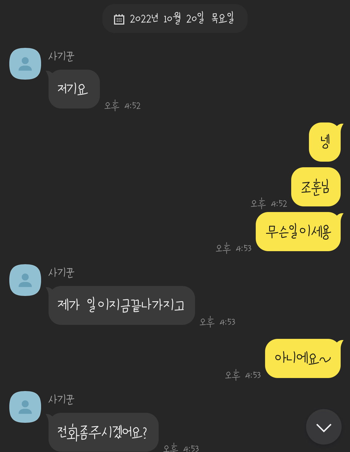 카톡 하는 내내 군고구마 200개 먹은 느낌