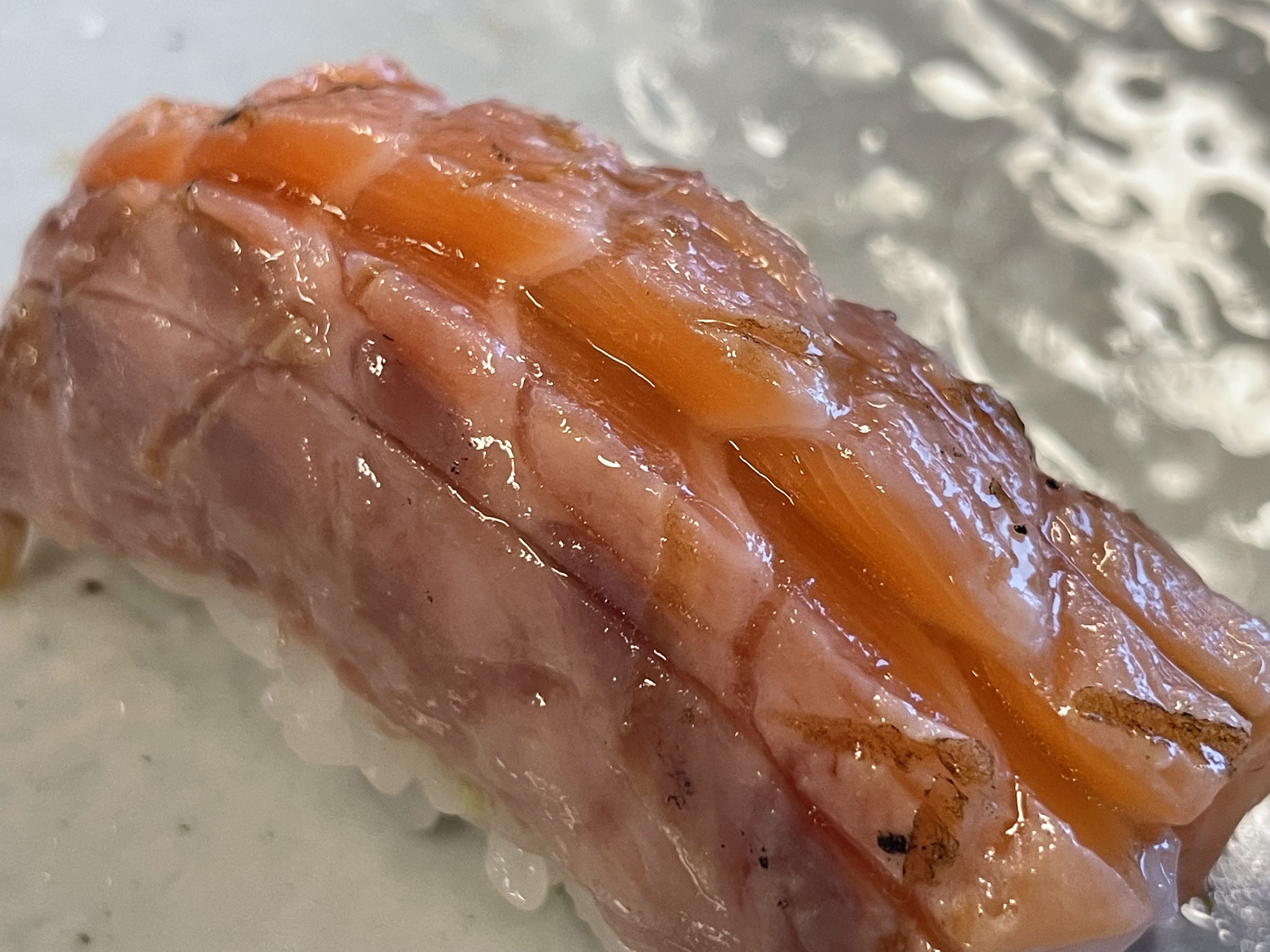 아홉번째 겉면만 살짝 열을 가한 연어초밥