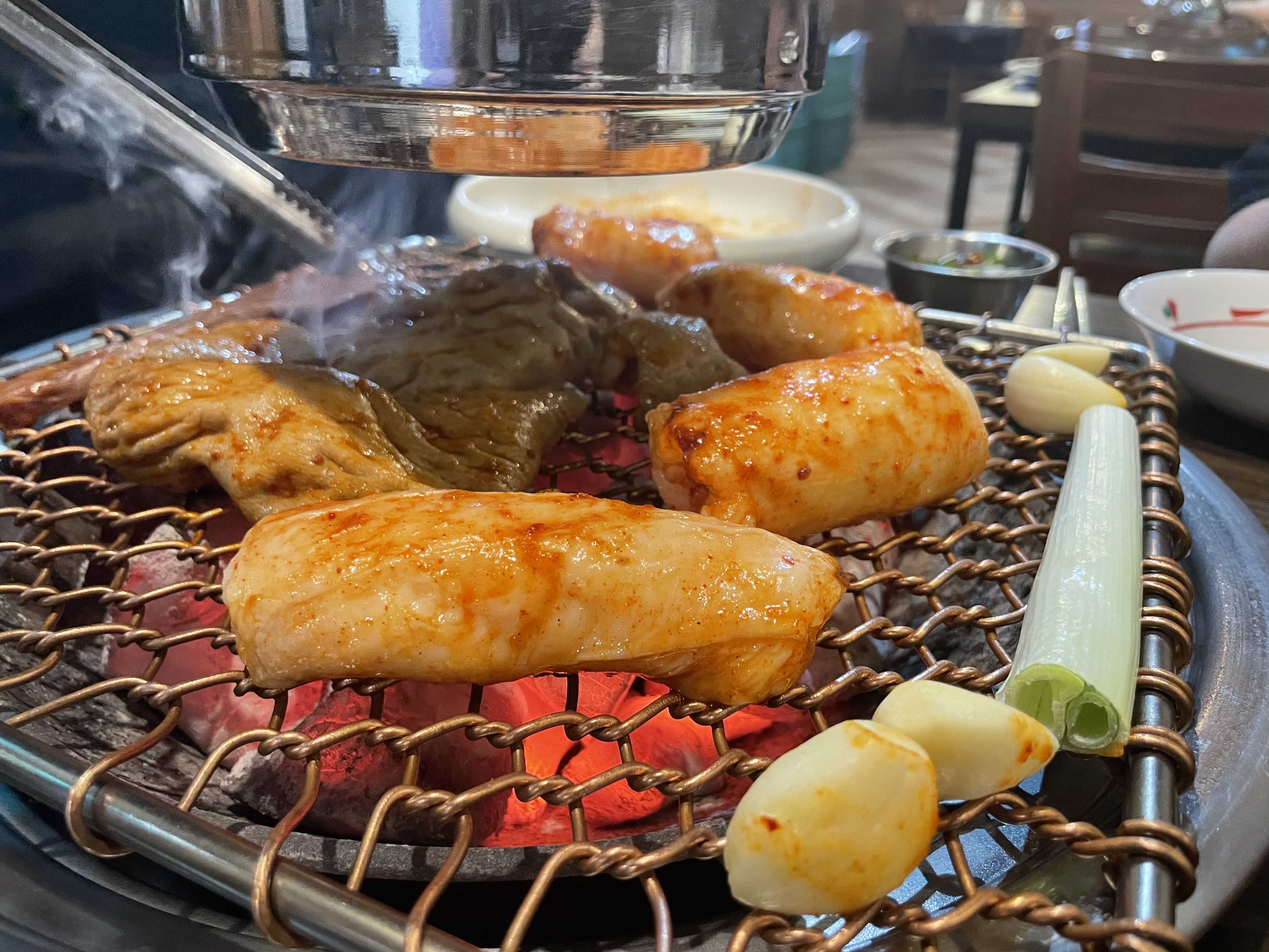 그리고 서비스로 염창과 염통을 구워주셨어요!