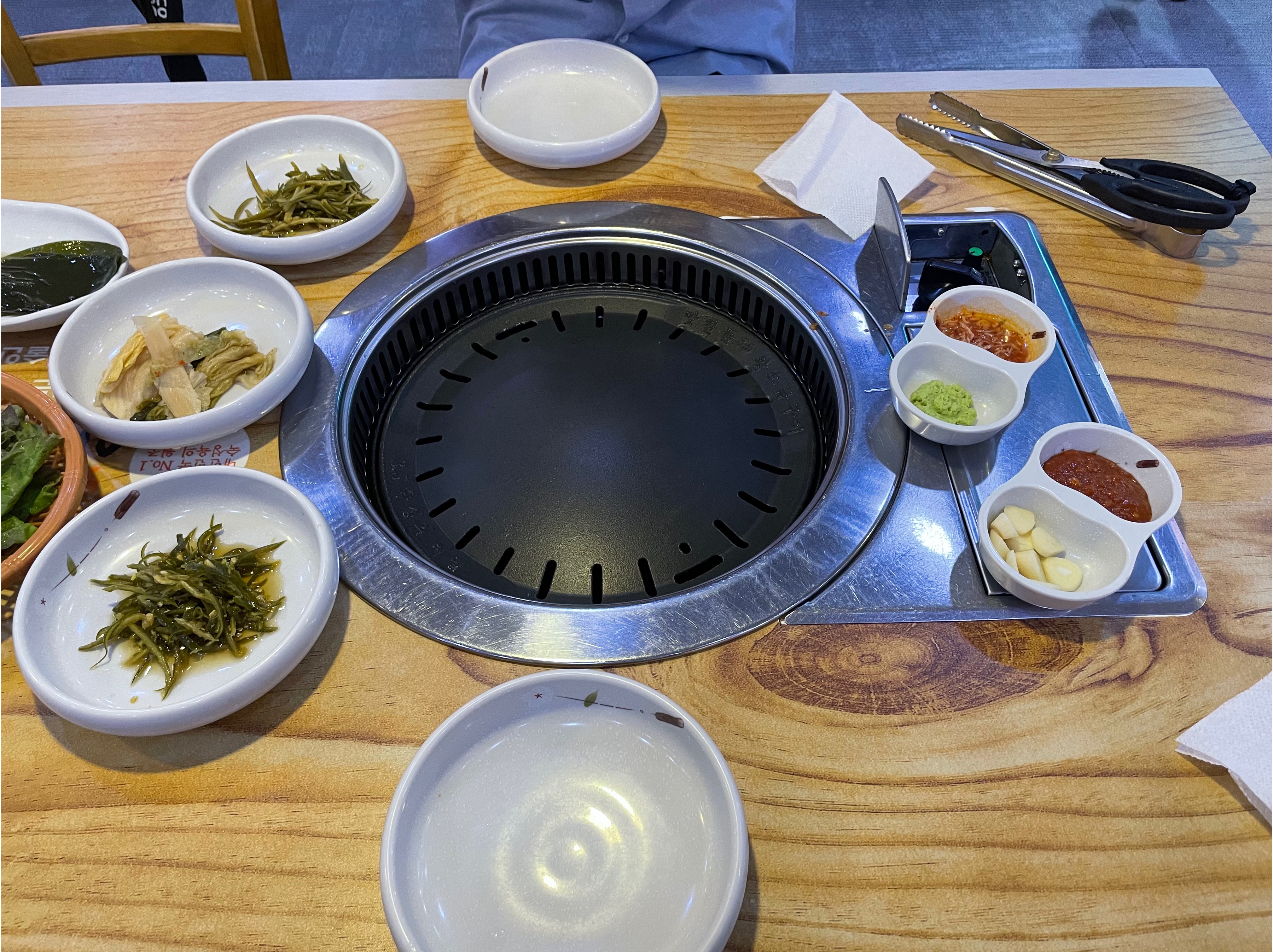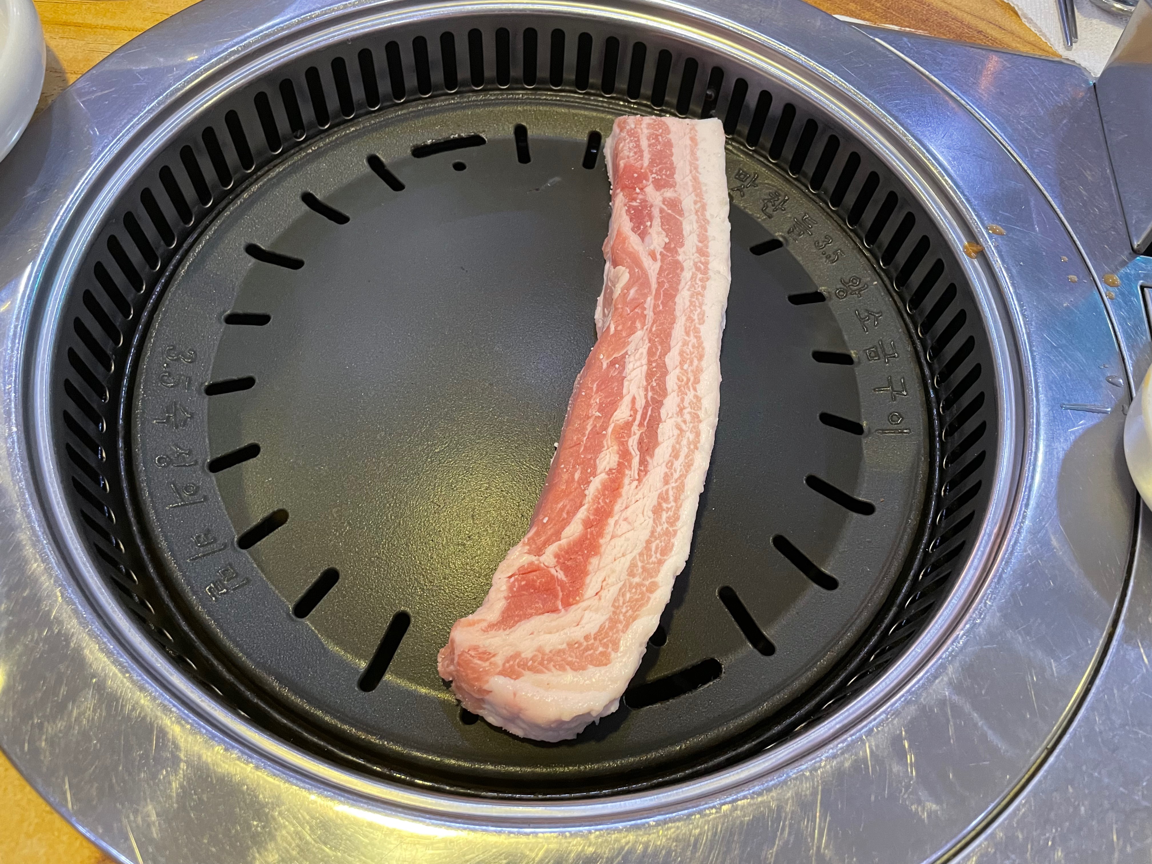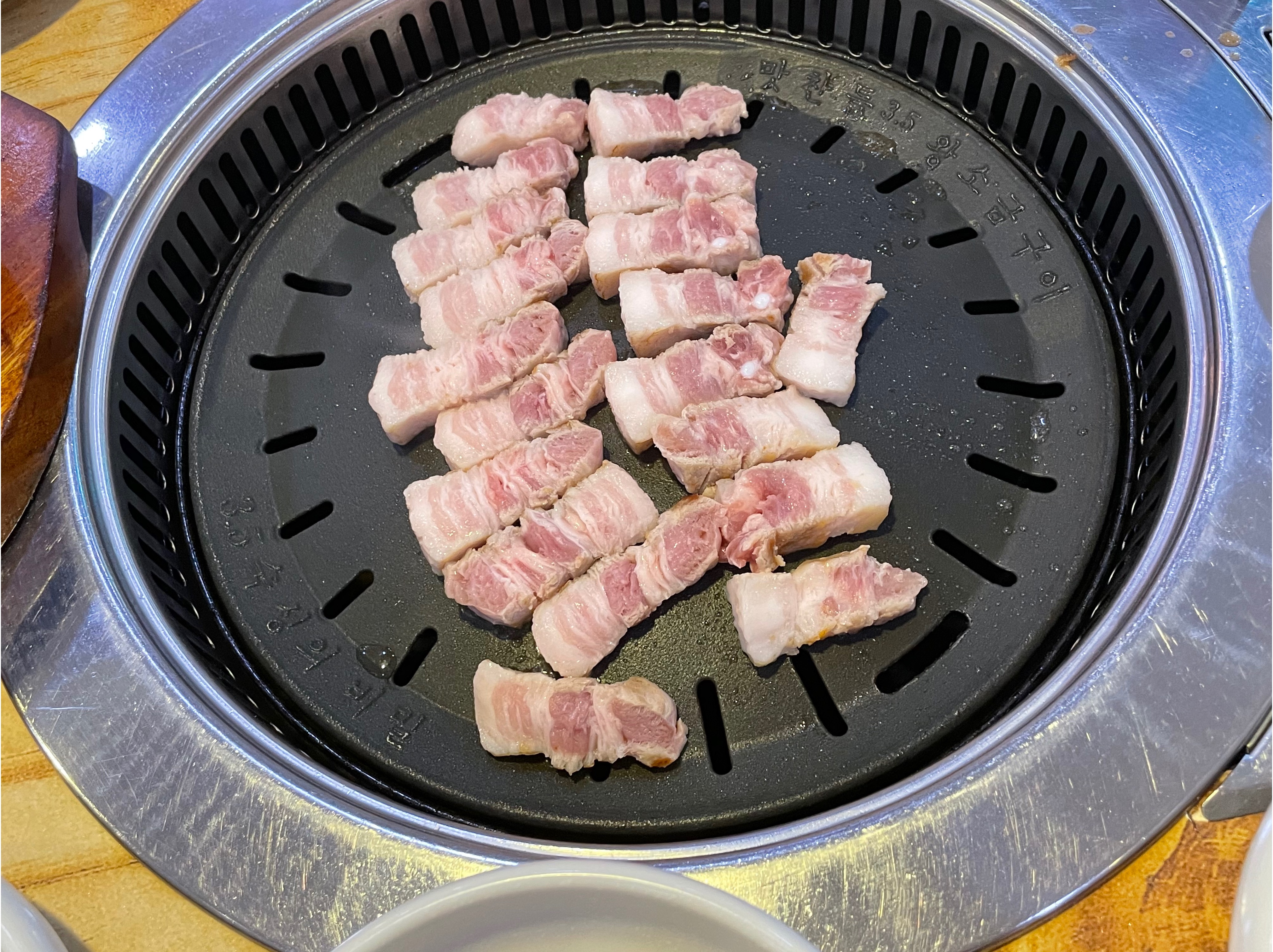 삼겹살이 겉에는 빠싹하고 안은 엄청 부드러워서 계속 들어가는 맛이었고 저는 고기랑 구운떡 같이 먹은게