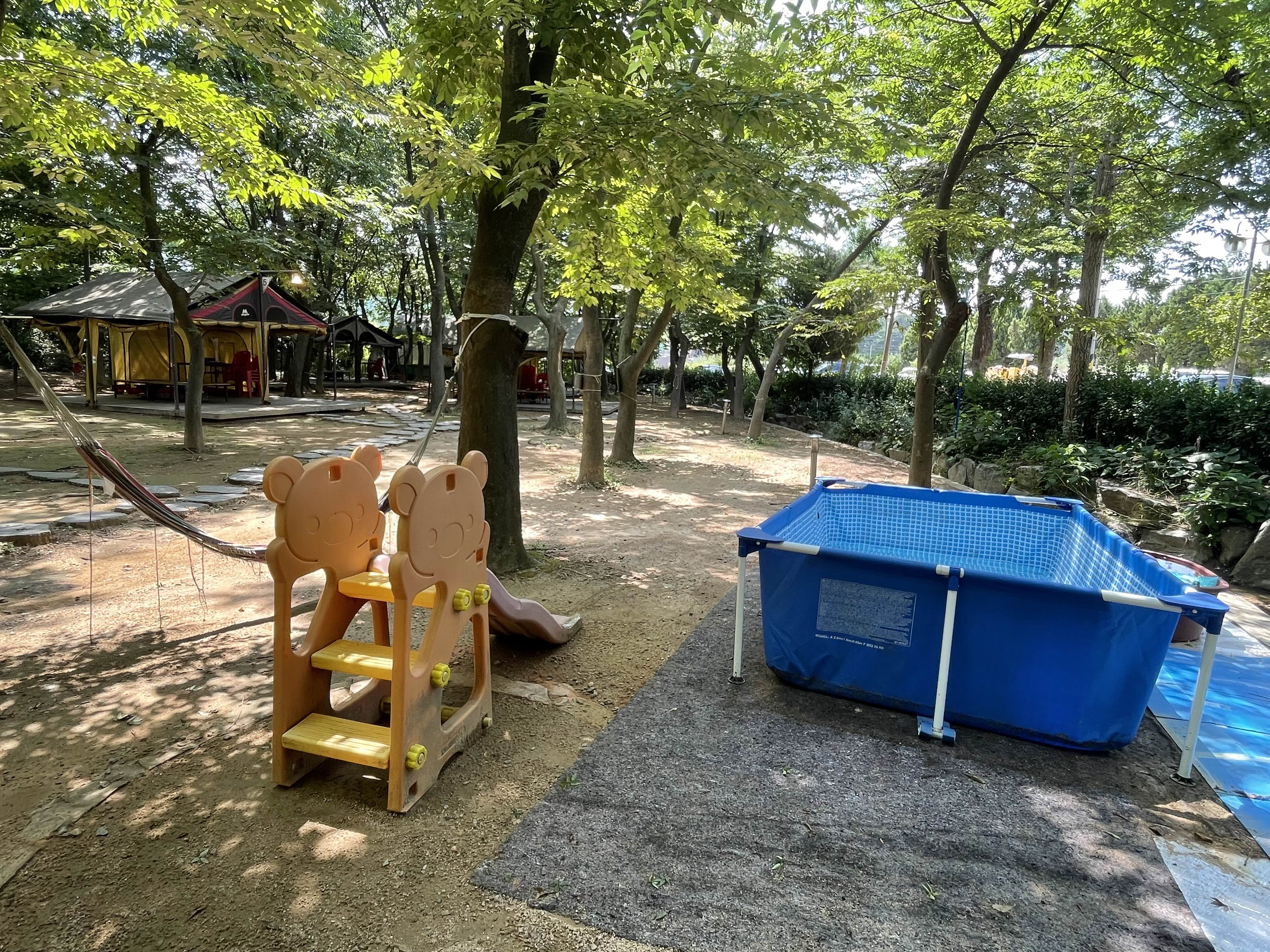 텐트 앞에는 어린이용 수영장이나,